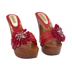 ROTE HOLZSCHUHE MIT BLUME -...