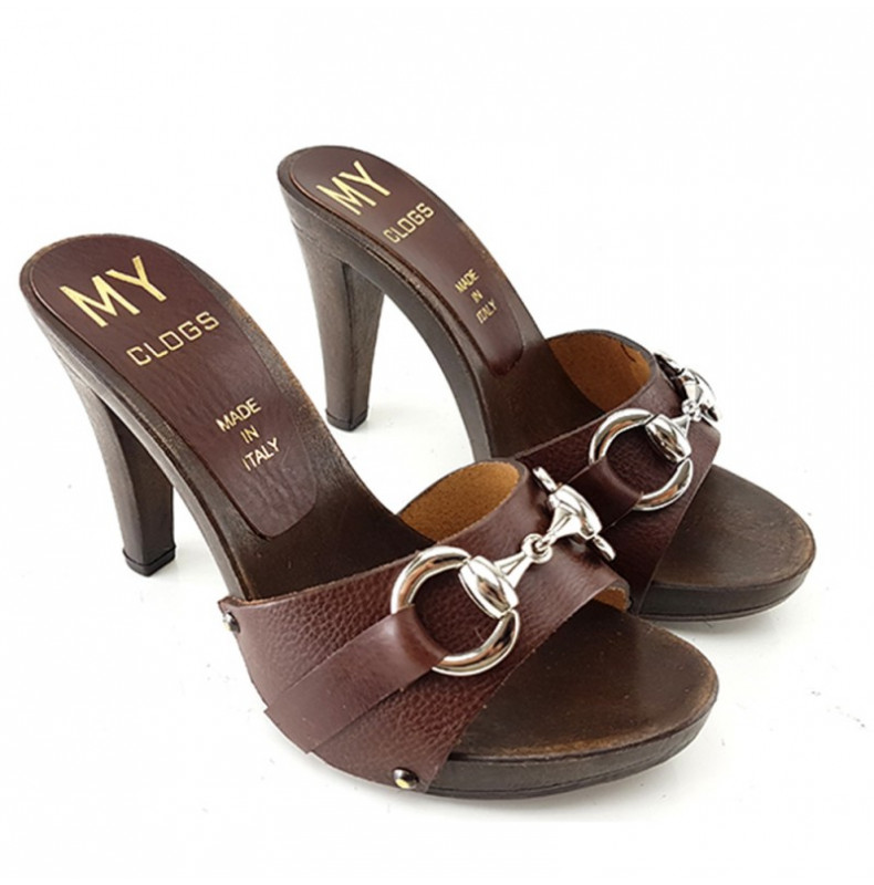 HOLZSCHUHE AUS LEDER MIT ACCESSOIRE - MY314 MARRONE