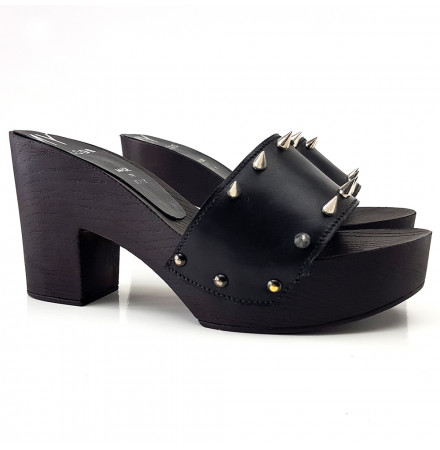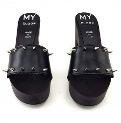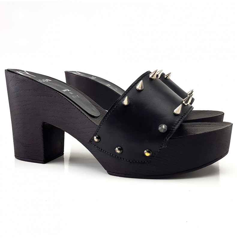 SCHWARZE HOLZSCHUHE MIT METALLVERZIERUNGEN - MY16 NERO