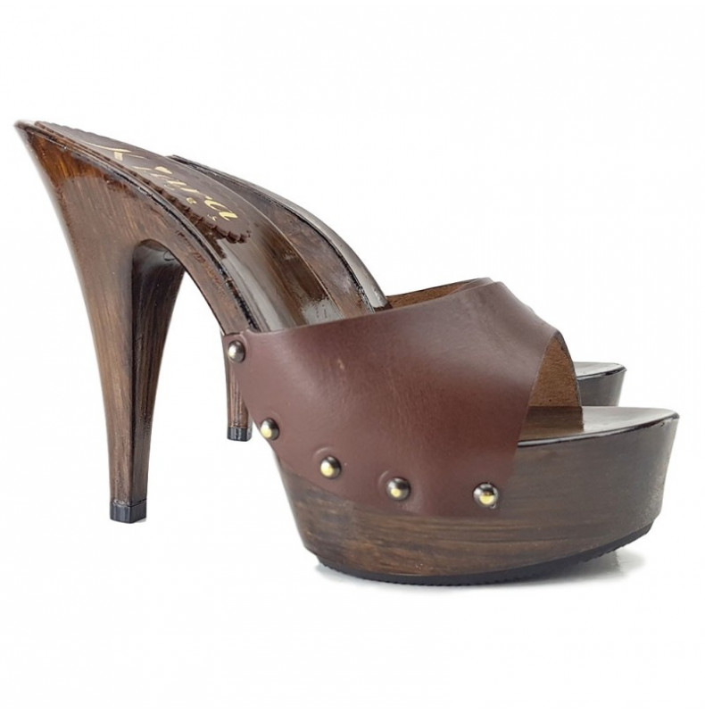 BRAUNE LEDERCLOGS – ABSATZ 13 CM