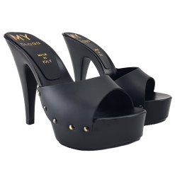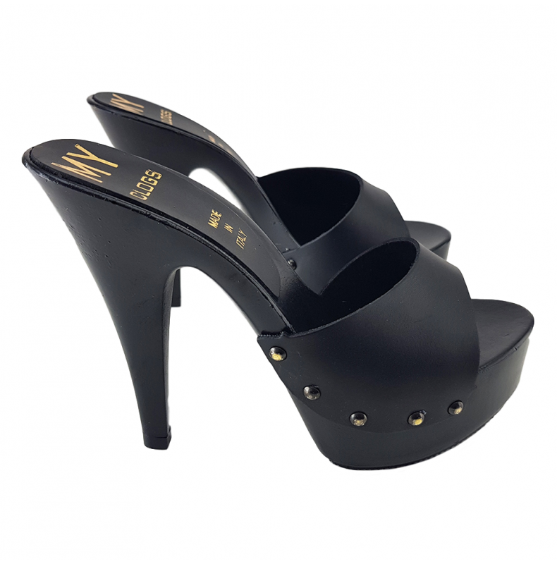 SCHWARZE HOLZSCHUHE AUS LEDER ABSATZ 13 - MY39501 NERO