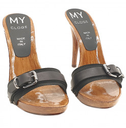 SCHWARZE HOLZSCHUHE MIT SCHNALLE - MY744 NERO