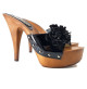 CLOGS MIT KRATZFESTEM MOU-BODEN UND SCHWARZEM LACK-OBERTEIL, GEFÜTTERT MIT LEDER MIT SCHWARZER BLUME.