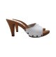 CLOGS MIT KRATZFESTEM MOU-BODEN IN HOLZOPTIK. 9 CM ABSATZ UND OBERMATERIAL AUS WEISSEM LEDER. HANDGEFERTIGT VON UNSEREN HANDWERKERN