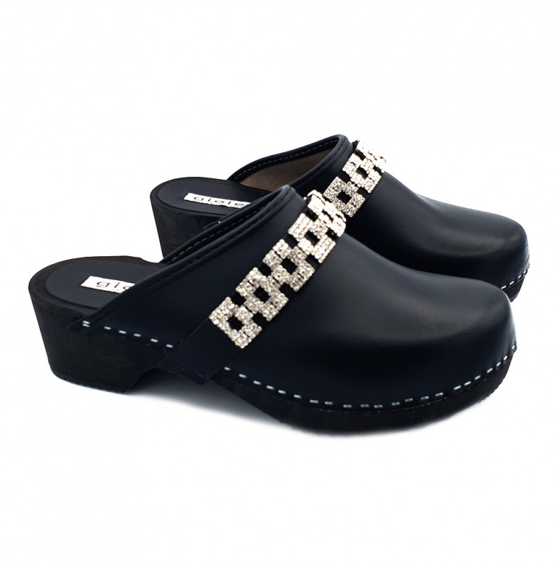 SCHWARZE SCHWEDISCHE CLOGS MIT STRASSBAND - G6419 NERO