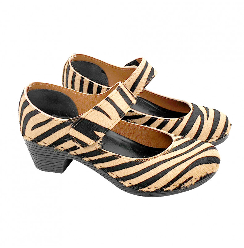 SABOT AUS BEIGE ZEBRA GESCHLOSSENEM LEDER - G986 ZEBRA BEIGE