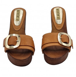 Clogs aus echtem Leder mit goldenem Accessoire
