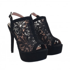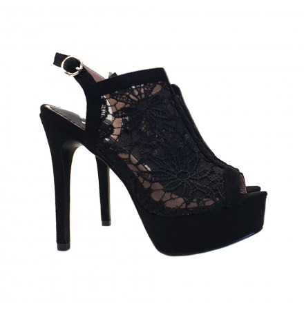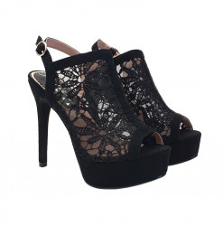 SANDALE MIT BESTICKTEM OBERTEIL | ABSATZ 13 UND RIEMEN - KC872 NERO