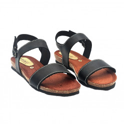 NIEDRIGE SCHWARZE DAMENSANDALEN MIT LEDERBAND - G370 NERO