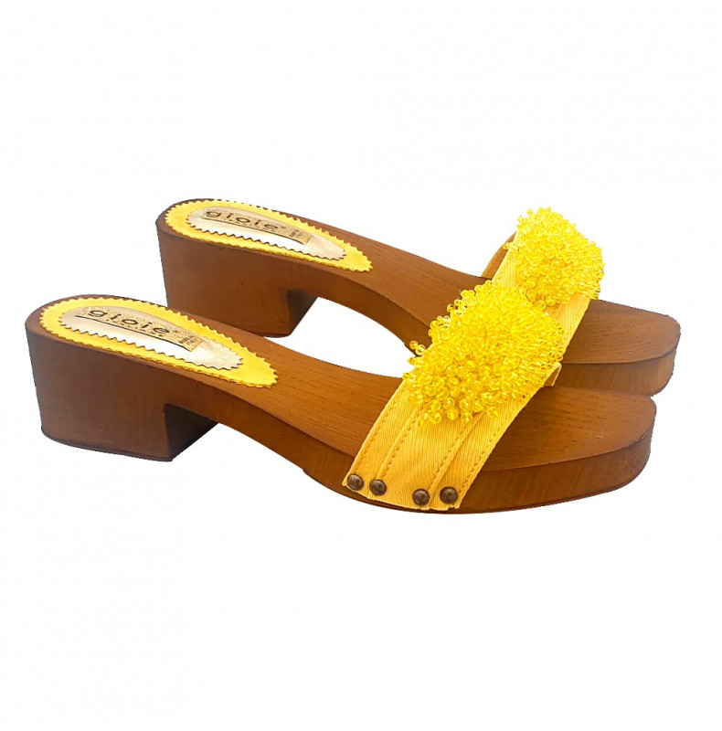 SANDALEN MIT DOPPELTER GELBER BAND UND PERLEN - GM936 GIALLO