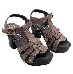 SANDALEN AUS BRAUNEM NABUK MIT ABSATZ 9 - MY169 NABUK MARRONE