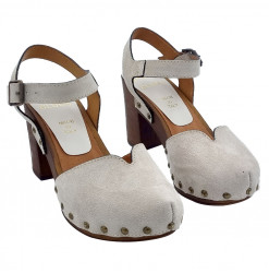 EISFARBE SANDALEN MIT KNÖCHELRIEMEN