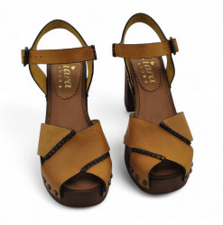 HOLZSCHUHE MIT ABSATZ 8.5 cm + PLATEAU 2.5 cm