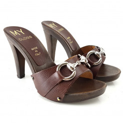 CLOGS LEATHER HANDMADE IN ITALY - MY314 MARRONE