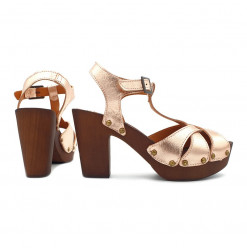 COMFORTABLE SANDALS IN BRONZE COLOR LEATHER WITH WOOD EFFECT BASE AND COMFORTABLE 10 CM HEEL AND 2.5 CM PLATFORM.