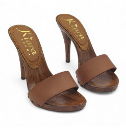 BROWN LEATHER HEEL CLOG 12 - KM7202 CUOIO