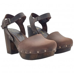 BLACK LEATHER CLOGS HEEL 9 - MY126 CAFFE