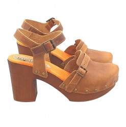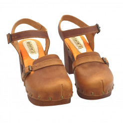 DUTCH CLOGS IN BROWN LEATHER WITH STRAP - G375 MARRONE