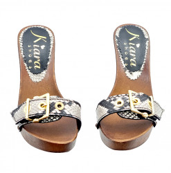 CLOGS WITH PYTHON-EFFECT BAND AND HEEL 11 - MY5036 SERP NERO