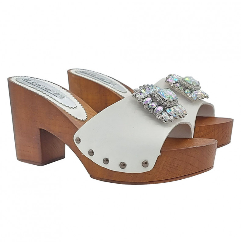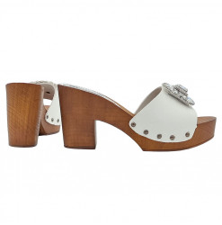 Women's clogs with leather upper enriched by accessory - Made in Italy - G1051 BIANCO