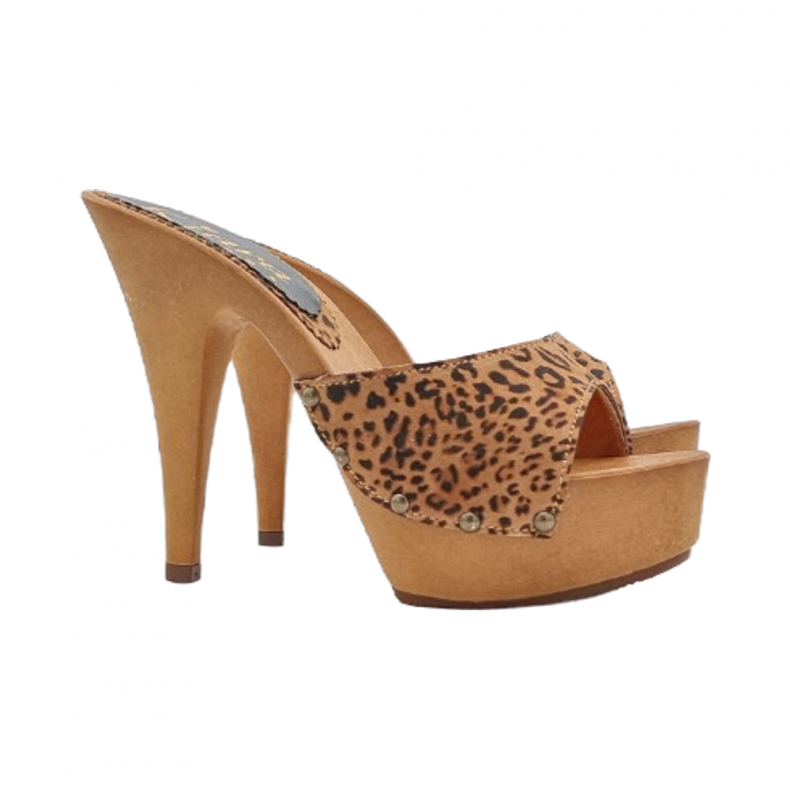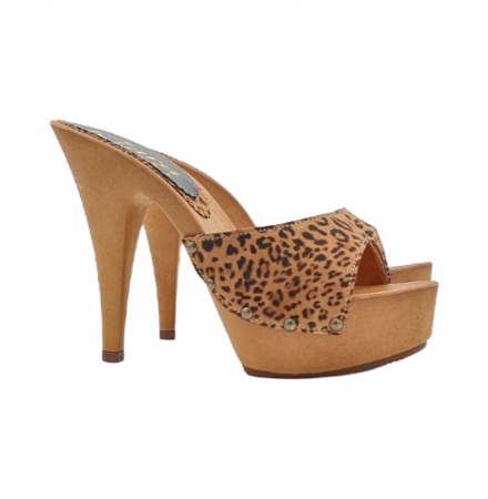 CLOGS WITH LEOPARD BAND AND HIGH HEEL