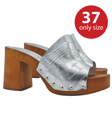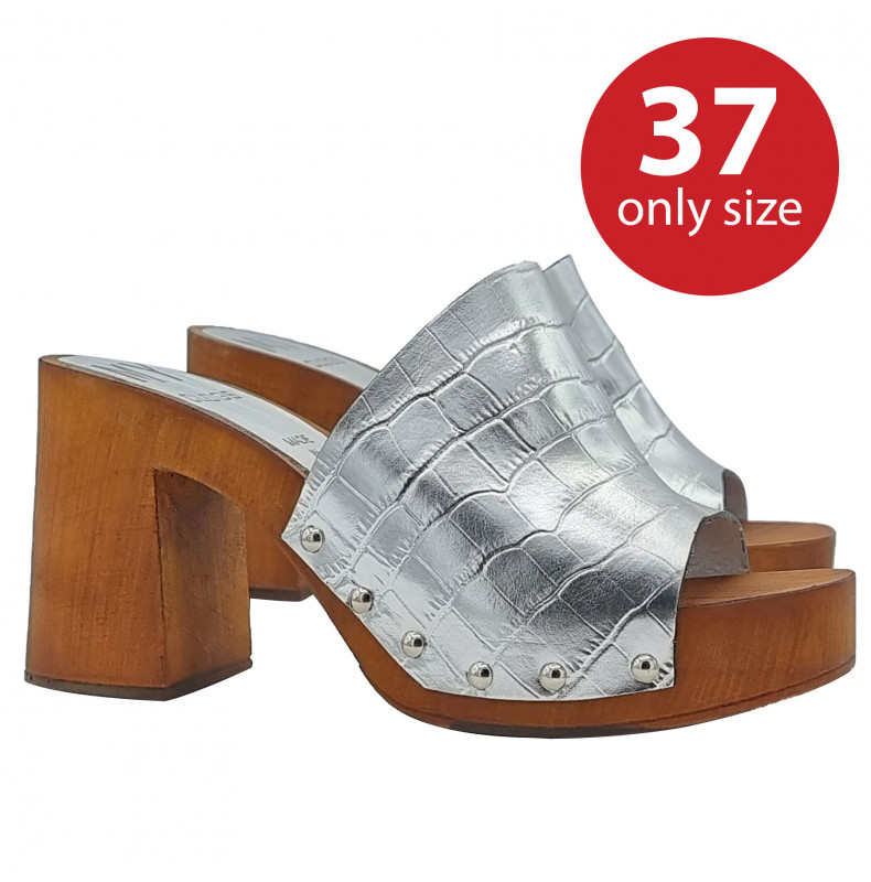 Silver clogs in genuine leather - last size 37 - MY226 COCC ARGENTO