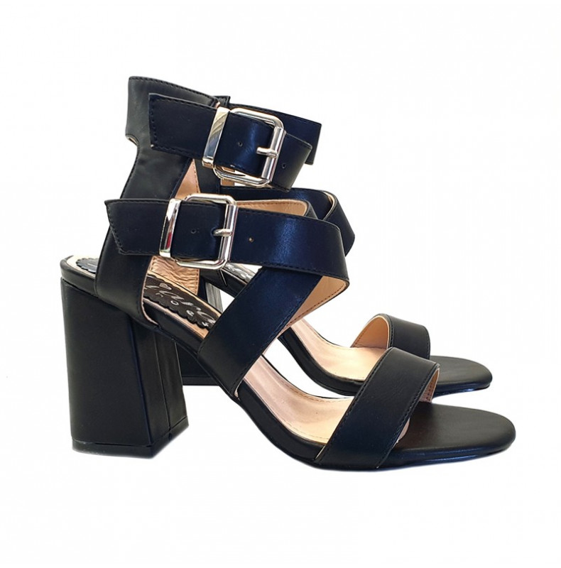 BLACK SANDALS WITH DOUBLE STRAP - 9 CM HEEL