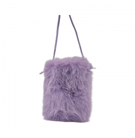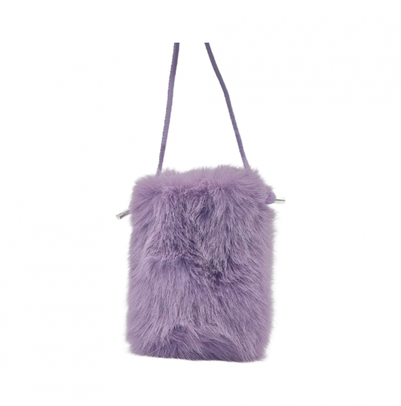 Bolso bandolera de pelo sintético color lila, elaborado con materiales de alta calidad.
