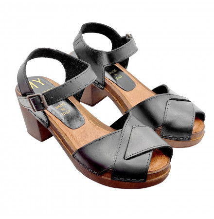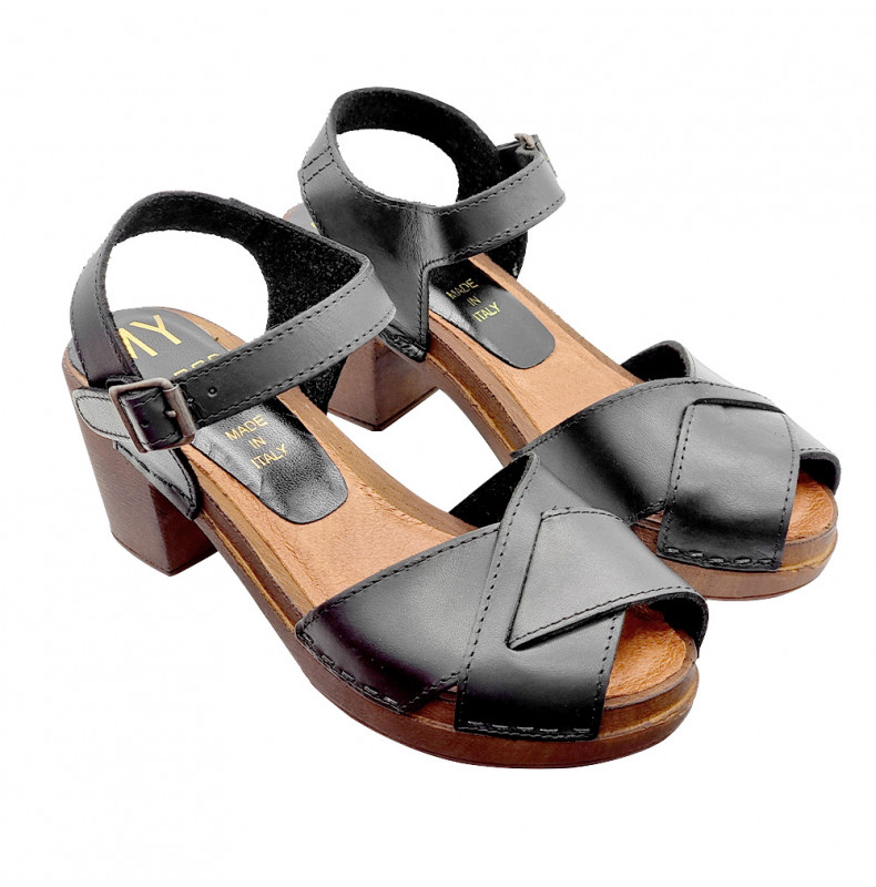 SANDALIAS NEGRAS CON BANDAS CRUZADAS Y TACÓN 6,5 - MY153 NERO