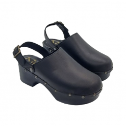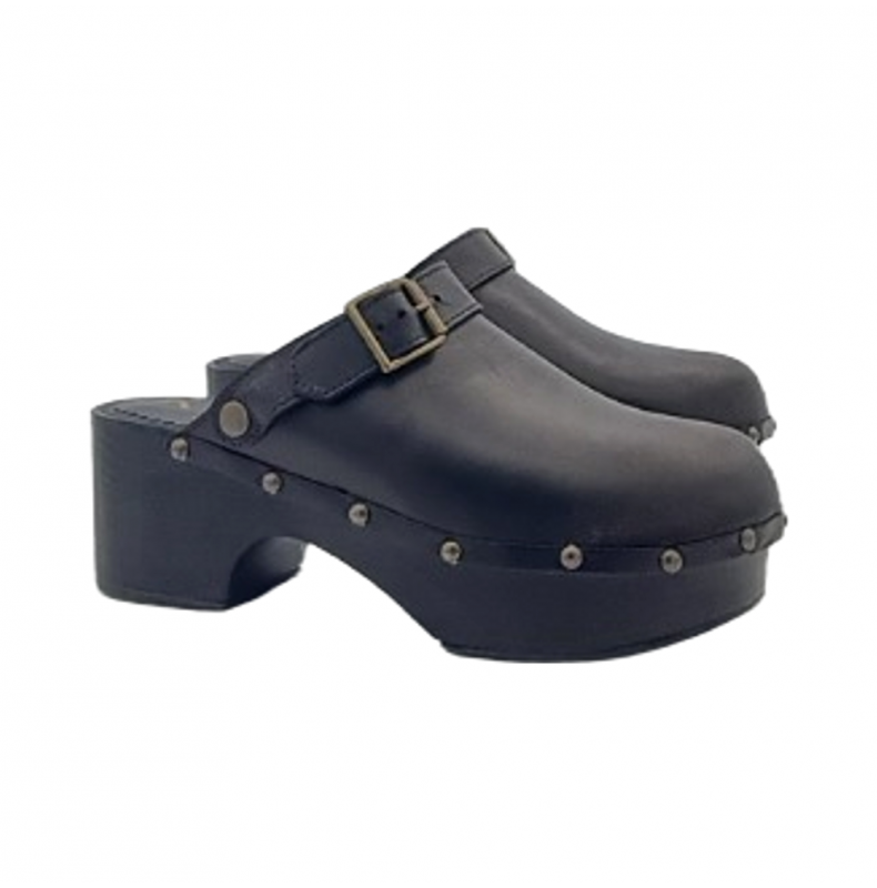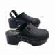 Zueco de producción italiana con estructura de PU total negro. Plantilla acolchada de piel auténtica. Cuero genuino superior Ligero y robusto