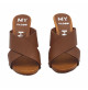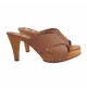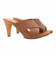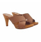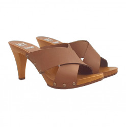 ZUECOS CON BASE EFECTO MADERA ANTIRRAZADURAS Y BANDA DE CUERO DOBLE CRUZADA. TACÓN ALTO 9 CM, CÓMODO Y ELEGANTE APTO PARA TODAS LAS OCASIONES.