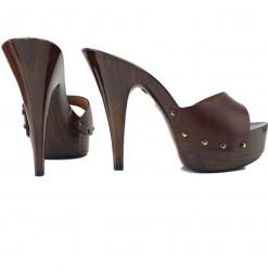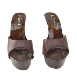 ZUECO DE CHOCOLATE ITALIANO MARRÓN CON CUERO MARRON SUPERIOR REALIZADO POR PERSONAL ITALIANO ESPECIALIZADO