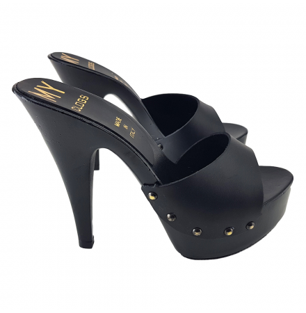 ZUECOS DE CUERO NEGRO TALÓN 13 - MY39501 NERO