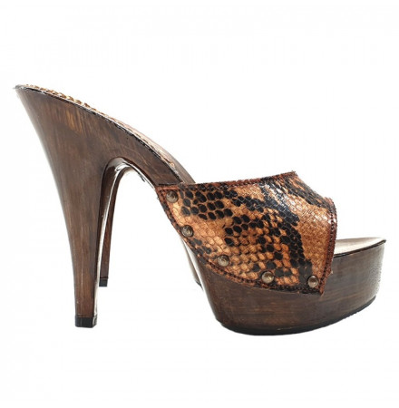 ZUECO DE PIEL DE PITÓN - COLOR AVELLANA