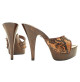 ZUECOS CON BASE DE EFECTO MADERA Y BANDA DE CUERO DE PITÓN COLOR AVELLANA FORRADA EN PIEL.