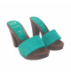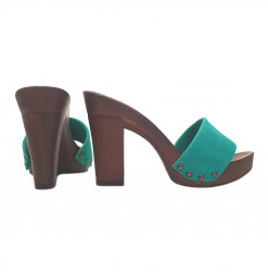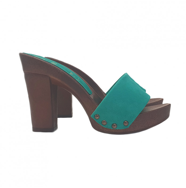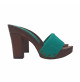ZÓCALO CON BASE DE EFECTO MADERA Y PARTE SUPERIOR DE GAMUZA VERDE. REALIZADO ÍNTEGRAMENTE POR PERSONAL ESPECIALIZADO ITALIANO, ALTURA DE TACÓN DE 10 CM CON PLATAFORMA DE 2 CM. CÓMODO Y ELEGANTE, ADECUADO PARA LARGOS PASEOS DE VERANOLARGOS PASEOS DE VERANO.