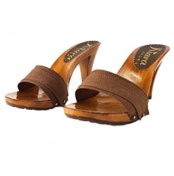 ZUECOS CON TACÓN DE 9 CM - COLOR MARRÓN
