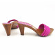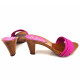 ZUECOS CON BASE DE EFECTO MADERA Y PARTE SUPERIOR FUCSIA. CONFECCIONADO ÍNTEGRAMENTE POR PERSONAL ESPECIALIZADO ITALIANO, ALTURA TACÓN 8 CM. CÓMODO Y ELEGANTE, ADECUADO PARA LARGOS PASEOS DE VERANO.