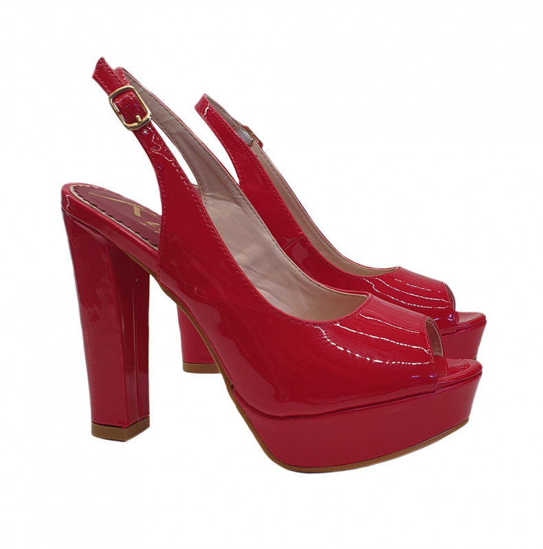 PUNTA ABIERTA ROJA CON 12 TALONES Y CORREA - KC27 VERN ROSSO