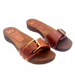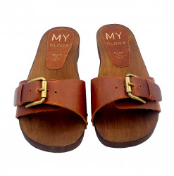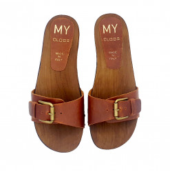 SANDALIAS PLANAS PIEL HEBILLA - MY156 CUOIO
