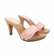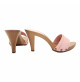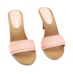 ZUECOS CON BASE DE TOFFEE EFECTO MADERA. TACÓN DE 9 CM Y PARTE SUPERIOR DE CUERO ROSA. HECHO A MANO POR NUESTROS ARTESANOS