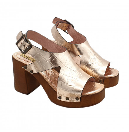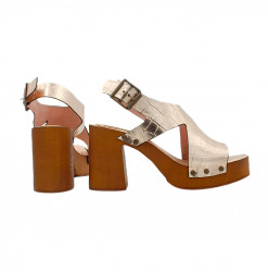 SANDALIA MUJER PIEL TACON CORREA AJUSTABLE 9 CM - MY188 COCCO ORO