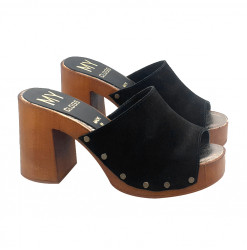 ZUECO DE ANTE NEGRO CON TACÓN ABIERTO DE 8,5 CM - MY171 CAM NERO