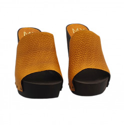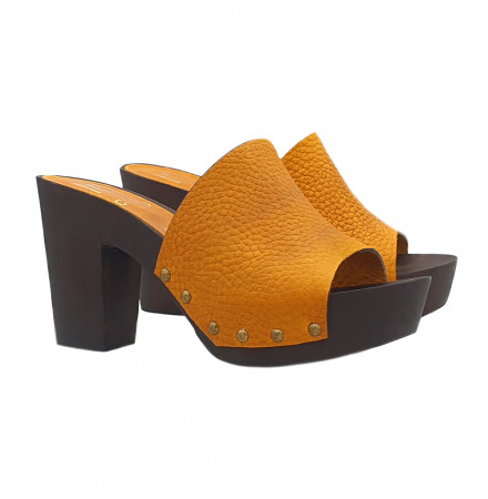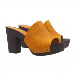 ZUECOS ABIERTOS DE CUERO AMARILLO CON CÓMODO TACÓN - MY187 GIALLO