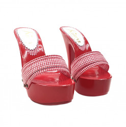 Zuecos de mujer con base lacada en rojo, doble banda ESTILO Pin Up