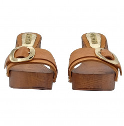 Zuecos en Piel Verdadera con Accesorio Dorado