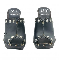 Zuecos vintage de tacón alto y parte superior de cuero genuino