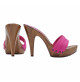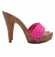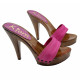 Descubra el encanto atemporal de nuestros zuecos artesanales fabricados íntegramente a mano en Italia. La base lacada efecto madera se combina con una doble banda de color fucsia, para un estilo único y decidido. El tacón de 11 cm estiliza la figura, permaneciendo sorprendentemente estable y cómoda gracias a la calidad de los materiales y a la elaboración cuidada hasta el más mínimo detalle.