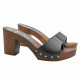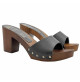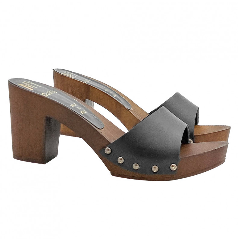 Zuecos de piel con base efecto madera altura tacón 7,5 cm