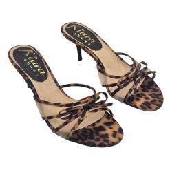 Confeccionadas en tejido con estampado de leopardo y delicada malla, presentan un diseño elegante con finas tiras y un lazo central que realza el pie. El tacón fino de 7 cm estiliza la figura sin renunciar a la comodidad, haciéndolas perfectas tanto para el día como para la noche.